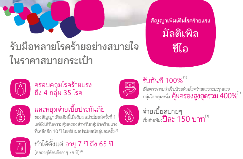 คุ้มครอง 35 โรคร้าย ตั้งแต่ตรวจพบ สูงสุด 4 เท่า! รับมือหลายโรคร้ายอย่างสบายใจ ในราคาสบายกระเป๋า คุ้มครองถึงอายุ 80 ปี