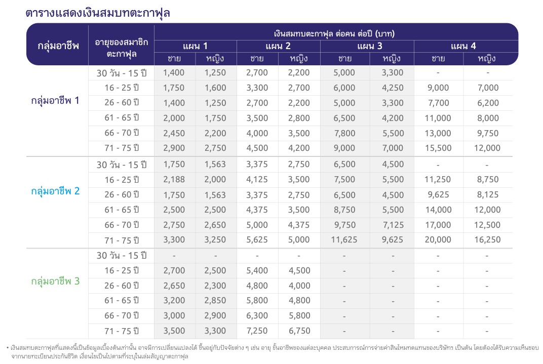 ตารางเบี้ยประกันอุบัติเหตุ PA ตะกาฟุล SAFETY