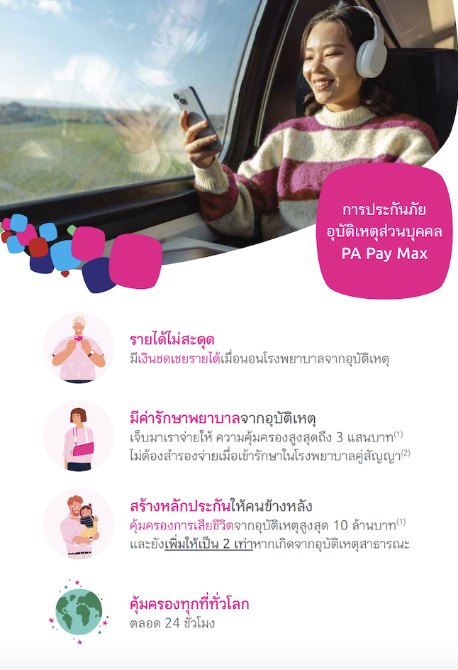 - ไม่ต้องทนเจ็บกับอุบัติเหตุอีกต่อไปให้ PA Pay Max คุ้มครอง อุ่นใจ ไปทั่วโลก