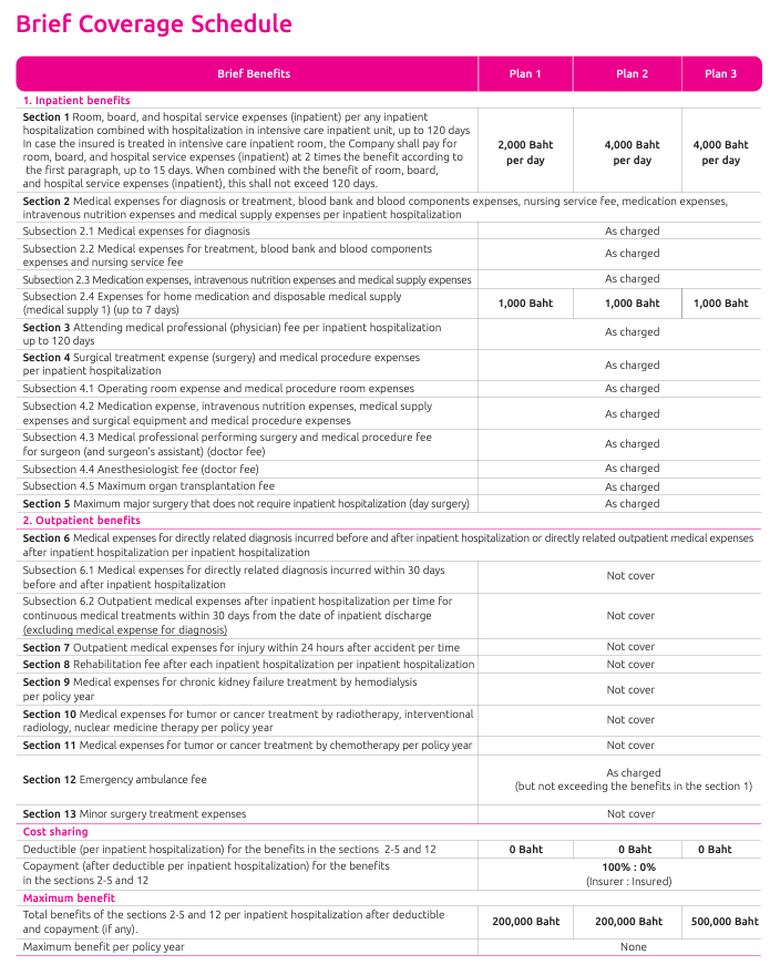 เหมาจ่ายตั้งแต่บาทแรก สูงสุด 500,000 บาท ต่อการเข้าพักรักษาตัวครั้งใดครั้งหนึ่ง(1)
