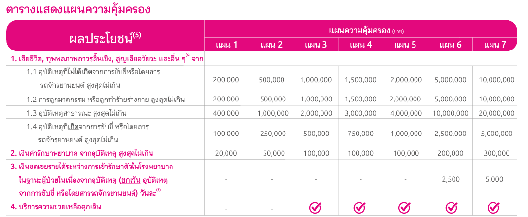 ตารางแผนคุ้มครองประกันอุบัติเหตุ PA Safety