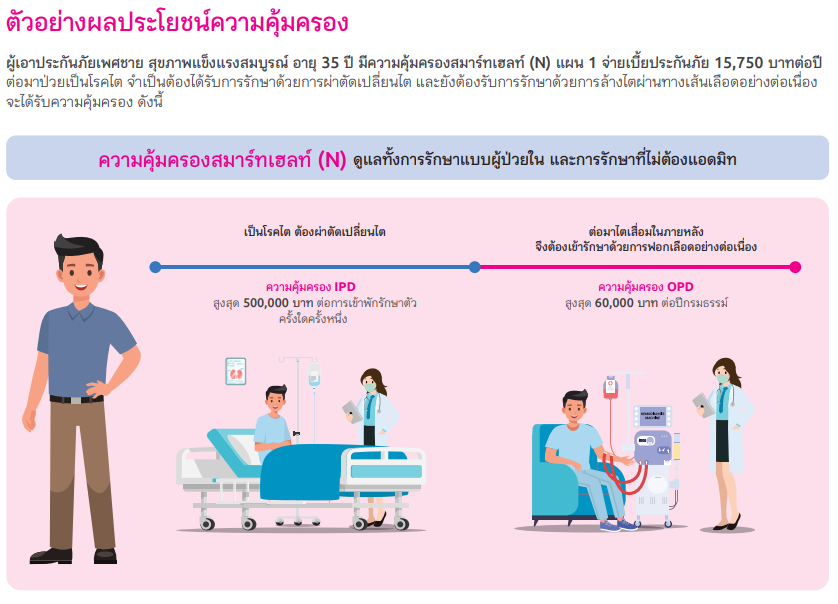 คุ้มครองค่าล้างไต เคมีบำบัด และค่าฉายแสงสูงสุดถึง 60,000 บาท ต่อปี